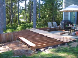 Deck Project: 350 SF Original porch on the back was too small for any activity so we set out to maximize the space and utilized the unusable slope along the side of the house.